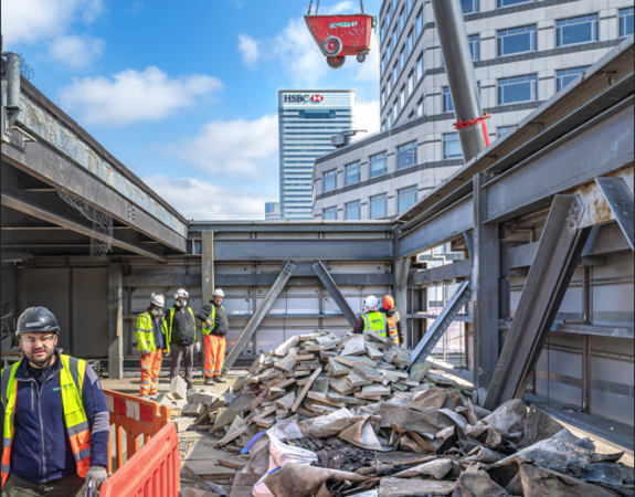 17 COLUMBUS COURTYARD Contractor: Morgan Sindall Value: £7m Demolition of 100m3 of existing structural concrete. Removal of 460LM of existing Structural steelwork. Removal of 4450m2 of Glazed façade curtain walling. Strip out of 450m2 existing Stone Granite façade. Removal of 1450m2 of punched windows. Demolition of 1000m2 non-structural floor finishes Strip out of 10,000m2 of non-structural walls Carry out full Environmental site survey and removal of Pigeon Guinea removal Removal and disposal of the existing Fire fighting and Goods lifts. Removal of the existing BMU cradles and Rails. 200m3 of concrete to be poured. Design and install of 120t Structural steelwork Design and install strengthening works to existing steel structure. Complete Validation checks on the existing structural steelwork for new loadings to be applied. On site welding to 13,500 shear studs. Installation of 2500m2 mesh reinforcement. Design and install 1800m2 metal decking. 68.2T of Glass removed form the project through St.Gobain for reuse, this saves 47.740kg of C02 going back into the atmosphere. 200no existing Fire doors removed and donated to a local Charity.