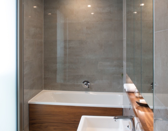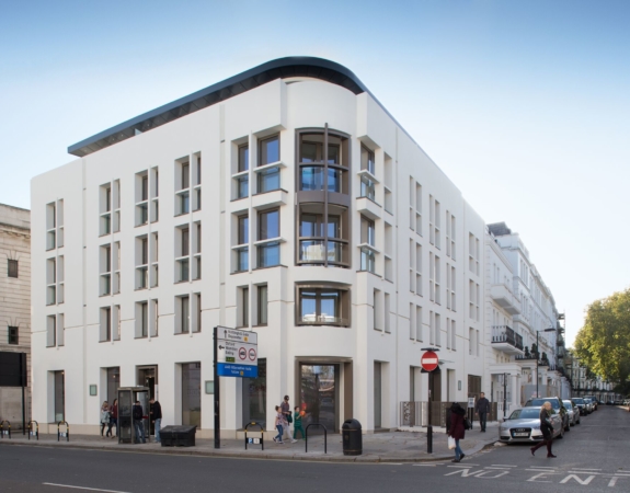 45A PORCHESTER ROAD, ROYAL OAK, LONDON W2 Contract: JCT Design & Build 2011 Value: £4,200,000 Duration: 84 weeks Completed: April 2014 Architect: Chartered Practice Architects Project Manager/Cost Consultant: Brown Lock Partnership Limited Structural Engineer: Simpson Associates Services Consultant: Silcock Dawson & Partners Mixed use Design and Build project to form nine luxury apartments with two floors for Educational use and a sub-basement for car parking. The new build project required the creation of a two storey reinforced concrete basement, transfer slabs at ground and first floors with another three floors of ‘flat’ slab structure for the residential space. The basement was created with a combination of ‘zero’ and traditional steel sheet piling including a substantial temporary works scheme. The building is largely clad with insulated render on SFS framework with powder coated aluminium windows and doors designed to meet Secure by Design and Level 4 Code for Sustainable Homes. Architectural enhancements to the external elevations include projecting feature fins together with a number of terraces with glass balustrades. The high quality nishes are consistent with the client’s target market and included, under floor heating, whole house ventilation (driven by heat recovery units located in a roof top plant room), AV installation, high quality kitchen and bathrooms with specific enhanced detailing.
