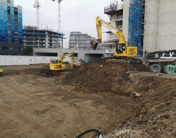 BATTERSEA PHASE 3B The Battersea Power station redevelopment is the transformation of a 42-acre site into a mixed-use retail, commercial and residential community. J Coffey have been entrusted to work on yet another phase of the iconic Grade II listed building. Appointed with installing 215 bearing piles with 120 tonnes of plunge columns, as well as the task of diverting 400m of services and drainage to construct the new Western ramp and walkway, we are proud to be involved in this project which will allow access to thousands of new visitors and residents from Battersea Park Road and the new Northern Line Extension. As part of the enabling works we also installed 1200m2 of tray deck over the new Northern Line Extension Box and removed 12000m3 of excavated material.
