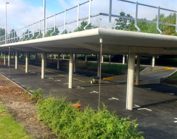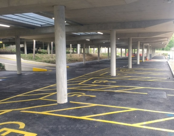 VODAFONE HQ – CAR PARK 7 , NEWBURY, BERKSHIRE Contract: JCT Standard Form of Building Contract Without Quantities 2011 Value: £2,400,000 Duration: 16 weeks Completed: July 2017 Project Manager: Mitie Cost Consultant: MESH Structural Engineer: Buro Happold “Undertaking major construction works on a busy campus site where we average 3,500 employees on site daily and manage parking for up to 2000 cars requires planning and coordination…. The forward focus and planning… has been key to the success of the project. Vodafone have not received a single complaint from any person inconvenienced by the works or traffic, quite impressive when you think of the sheeramount of construction machinery required. Finally, thanks again, the professionalism by J Coffey has made my job and that of our FM team that manage this campus so much easier.” Tony Steele, Project Development Manager, 1team at Vodafone. Following on from the success of Car Park 6 in 2015, Vodafone commissioned Car Park 7 to be built in the Vodafone ‘village’ at the Newbury campus. This facility was slightly larger, with a new deck of 3,000m2 and 135 new parking bays created. As before temporary link roads to adjacent car parks were considered in tandem with a considered logistics and traffic management plan to ensure that the ring roads at the campus could function properly despite the heavy construction plant, including craneage and concrete pumps. During the progress of the works, Vodafone also instructed J Coffey to undertake extensive remedial repair work and recovering of previous car park decks which were built many years ago were and in varying states of disrepair and degradation.
