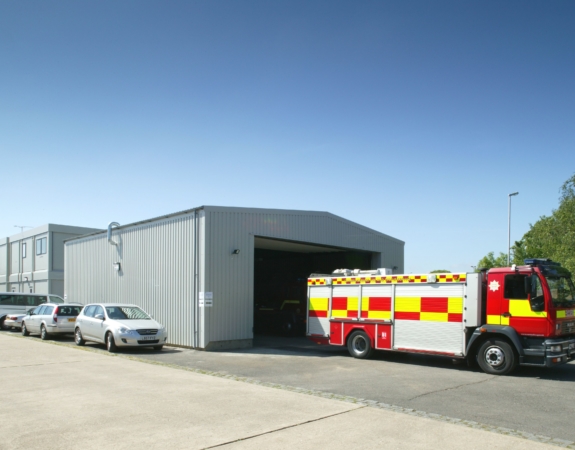CAMBRIDGE FIRE STATION Contract: JCT Design & Build Contract 2005 Value: £373,000 Duration: 14 weeks Completed: May 2011 Project Manager: Gardiner & Theobald LLP Cost Consultant: Quincy Mason Partners Structural Engineer: Manhire Associates Services Consultant: WSP Group Construction of a temporary fire station to re-house an operational unit to make way for a major mixed used redevelopment in the centre of Cambridge. This design & build project was secured via a competitive tender process on the basis of an economical and totally re-usable accommodation design solution. The project included portal frame structures to house 4 fire tenders plus ‘portacabin’ type control, administration, messing and welfare facilities for a fully operational re service. All the structures were designed to be disassembled on completion and re-used elsewhere by the Fire Authority.