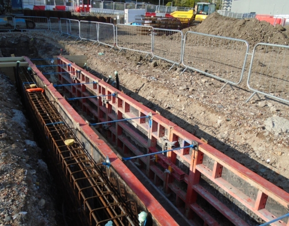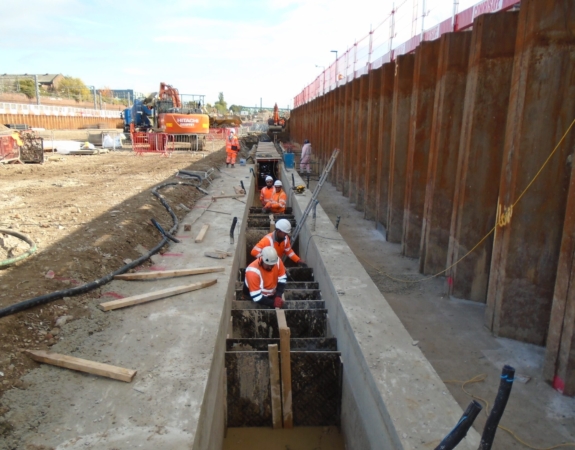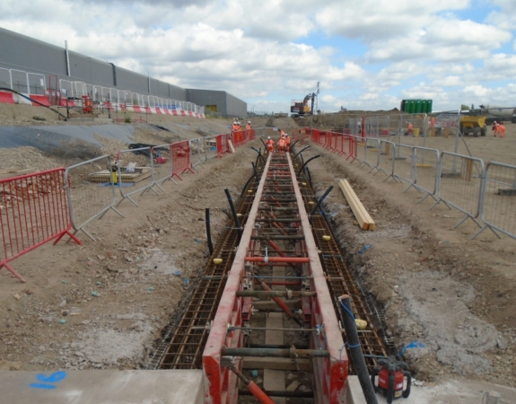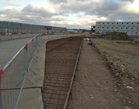HS2 – OLD OAK COMMON (GUIDEWALL & WORKING PLATFORMS) Client: SB3 (Balfour Beatty Ground Engineering & Bachy Soletanche) Value: £11.2m • 100.000t of stone import and Construct Pile Matt over 7 working Zones • 1.8k of Guidewall Construction, 2592m3 of concrete • Piling Attendance works • Piling Platform removal works • Construction of London Concrete Batching Plant 1000m3 of Concrete • Polymer Slab construction 500m3 concrete • Muck Bin Construction 1000m3 Concrete. • Construction of Wheel wash RC Slab using ecofriendly Concrete 20m3 • Various duct routes