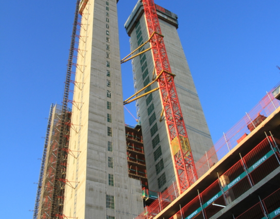 HYLO Client: CIT Main Contractor: J Coffey Construction Ltd / MACE Ltd Project Manager: Arcadis Structural Eng: AKT II Architect: HCL Cost Consultant: Arcadis Contract Value:£28M Method of Construction:Slipform Formerly Finsbury Tower, the HYLO lies within the Borough of Islington, on Bunhill Row to the South of Old Street and is approximately 3,650 square meters in plan. The existing tower consists of 16 storeys and is just under 60m in height. The project involves the partial demolition, extension and extensive refurbishment of the existing tower structure from floor 16 to the basement. The project also consists of a new 29 storey building, constructed using a twin Slipform which is poured simultaneously to a height of 124m. There are two additional 7 storey podium levels to the North and South of the main tower along with a separate 6 storey Residential frame.